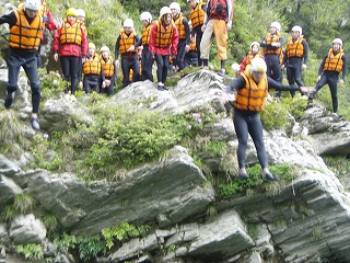 激流だけではありません!途中の岩の上から飛び込みも!!!!!こんな感じでジャーーーンプ!!!表情は・・・
