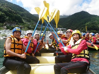 今日は天気も良いし、水量も多いし最高のラフティング日和だと思います。